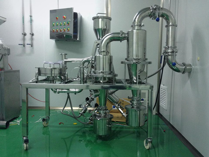 Наиболее популярным решением для сухого перемола является система струйной мельницы (jet mill) Потоки воздуха под высоким давлением сталкивают частицы, измельчая их. Такой подход обеспечивает качественный перемол до 5 микрон, больше 95% материала (в хороших условиях — 97%).